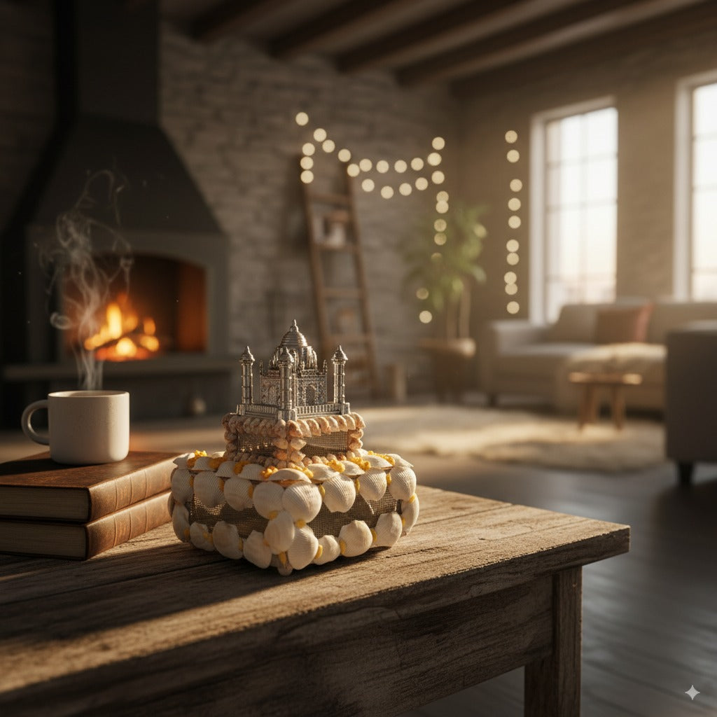 Handmade Taj Mahal-style seashell lamp. A decorative lamp that brings a unique and artistic touch to your home.